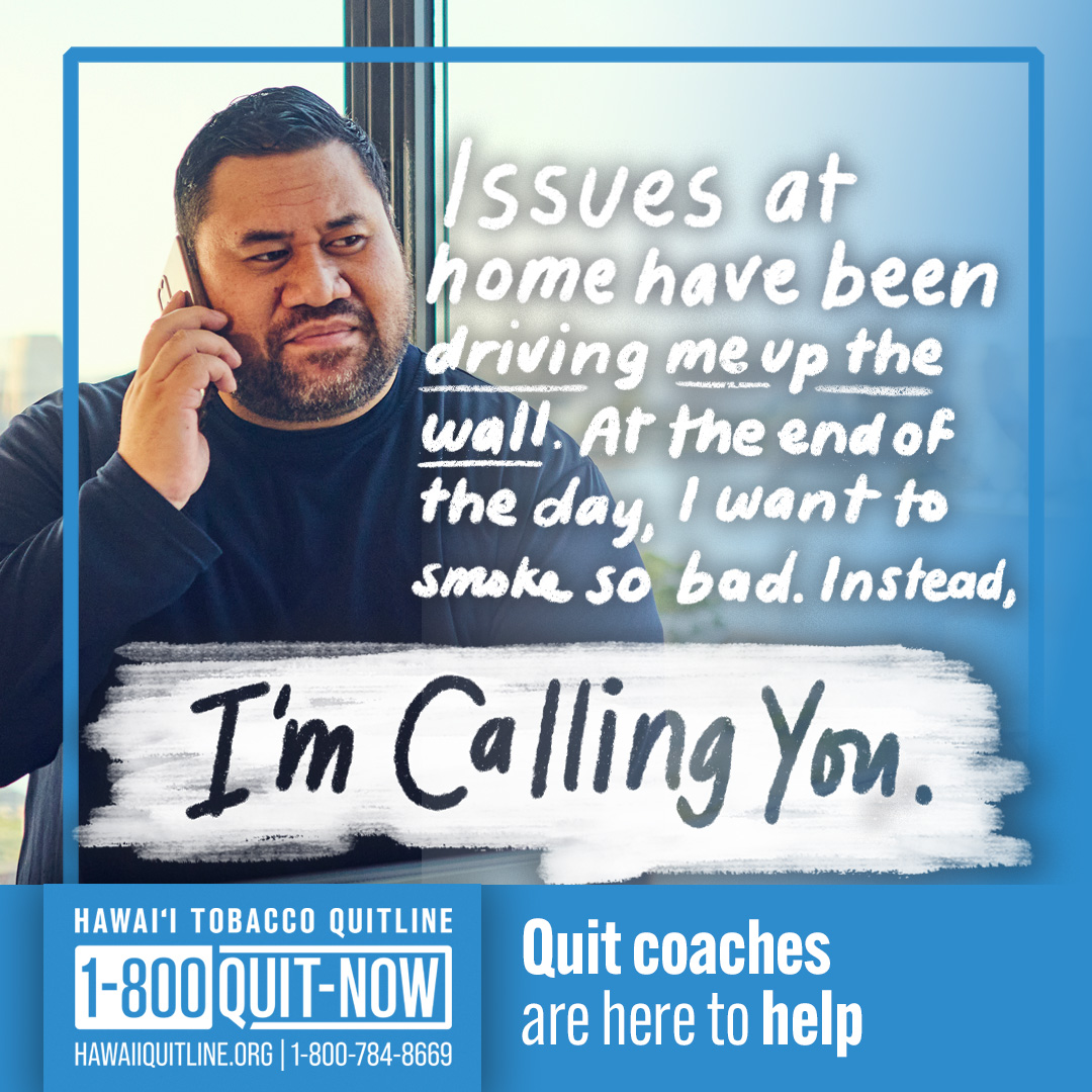 BECAUSE: the Hawaii Tobacco Quitline is ready to help anytime